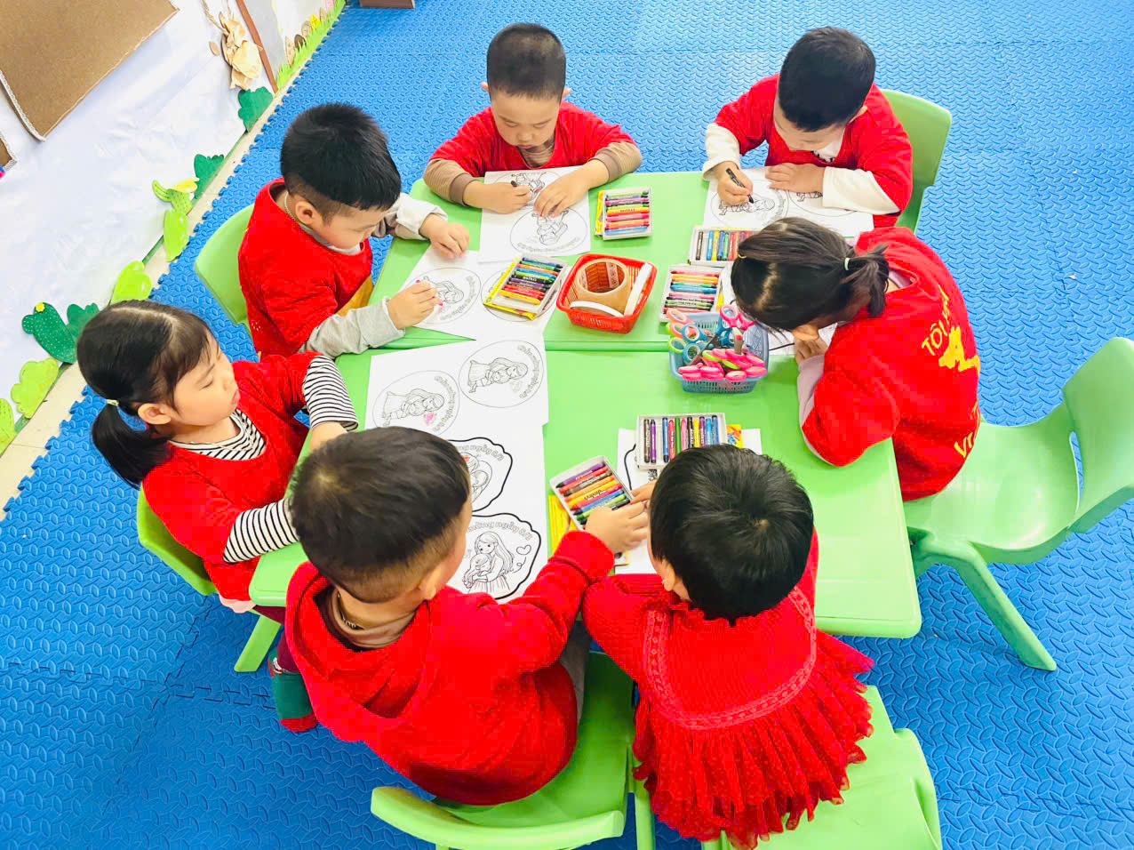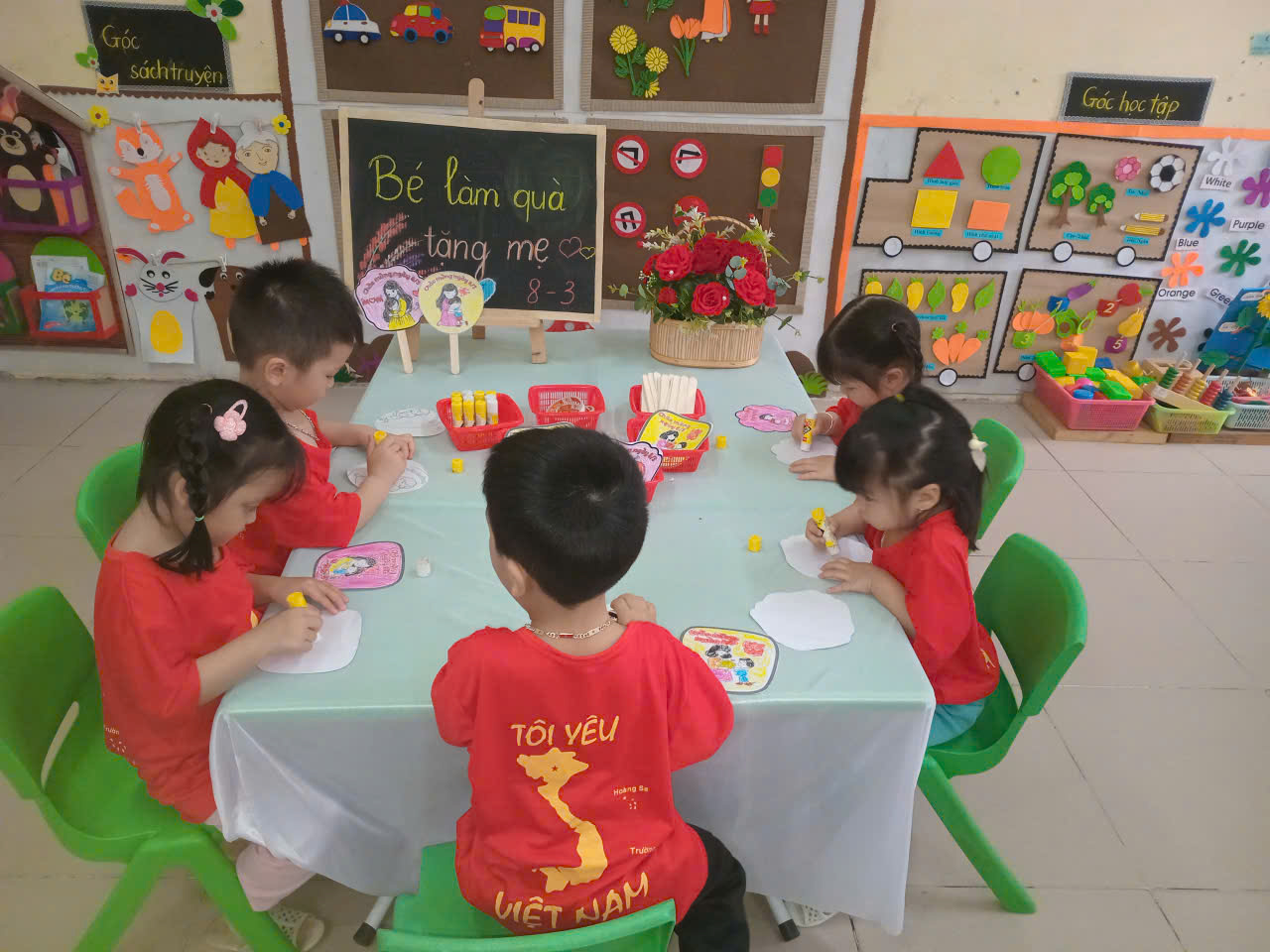 ✅Dưới sự hướng dẫn của cô giáo, các con đã tỉ mỉ cắt, dán, tô màu và trang trí những món quà thật xinh xắn. Mỗi sản phẩm tuy còn ngộ nghĩnh, đáng yêu nhưng đều chứa đựng tình yêu thương và sự cố gắng của các con dành cho bà, dành cho mẹ.