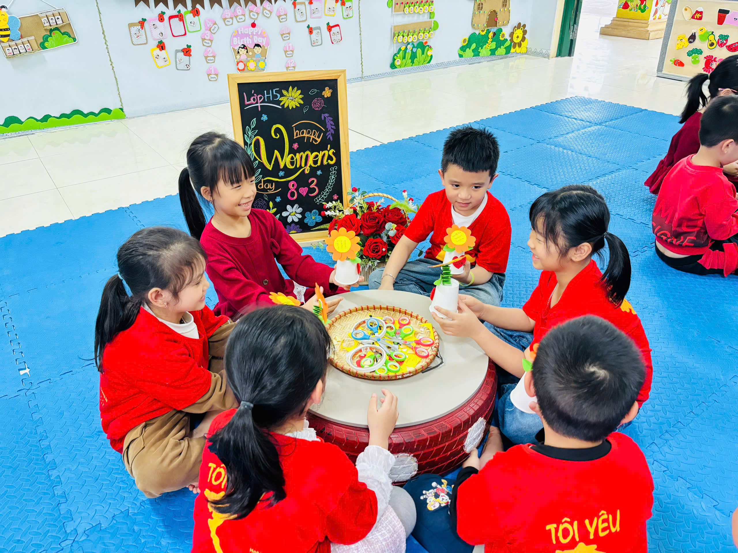 🤝Nhìn những đôi bàn tay nhỏ bé chăm chú làm quà, ai cũng cảm nhận được sự háo hức và niềm vui của các con khi nghĩ đến lúc mang món quà về tặng mẹ.