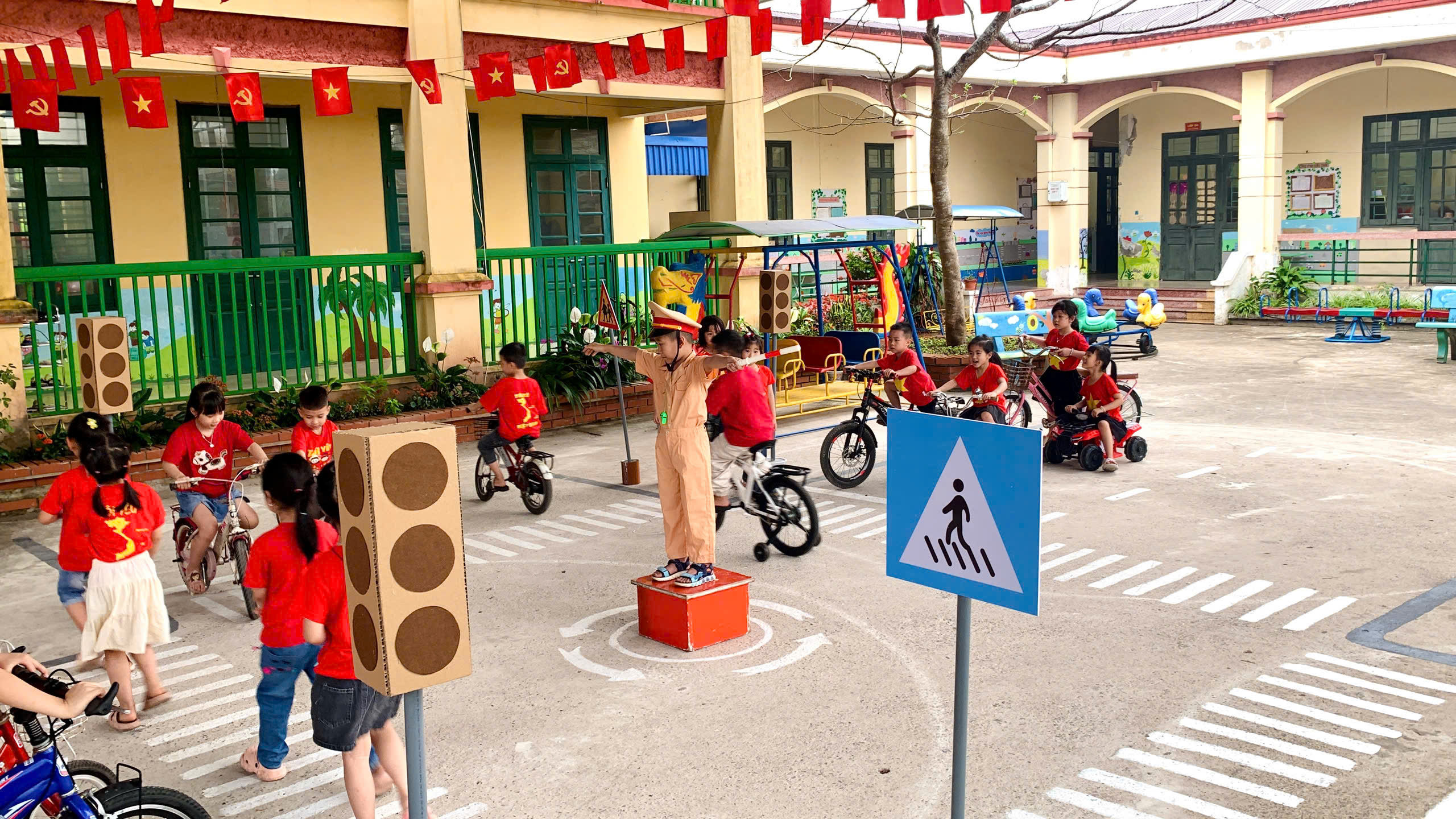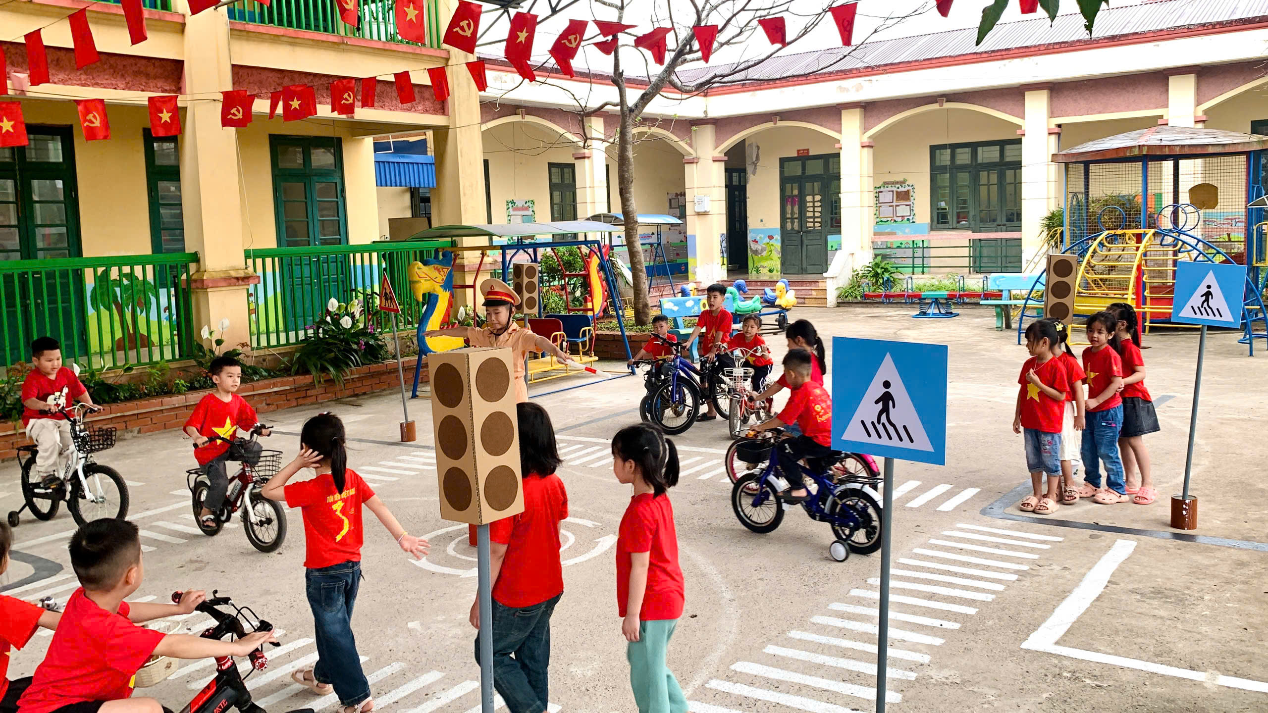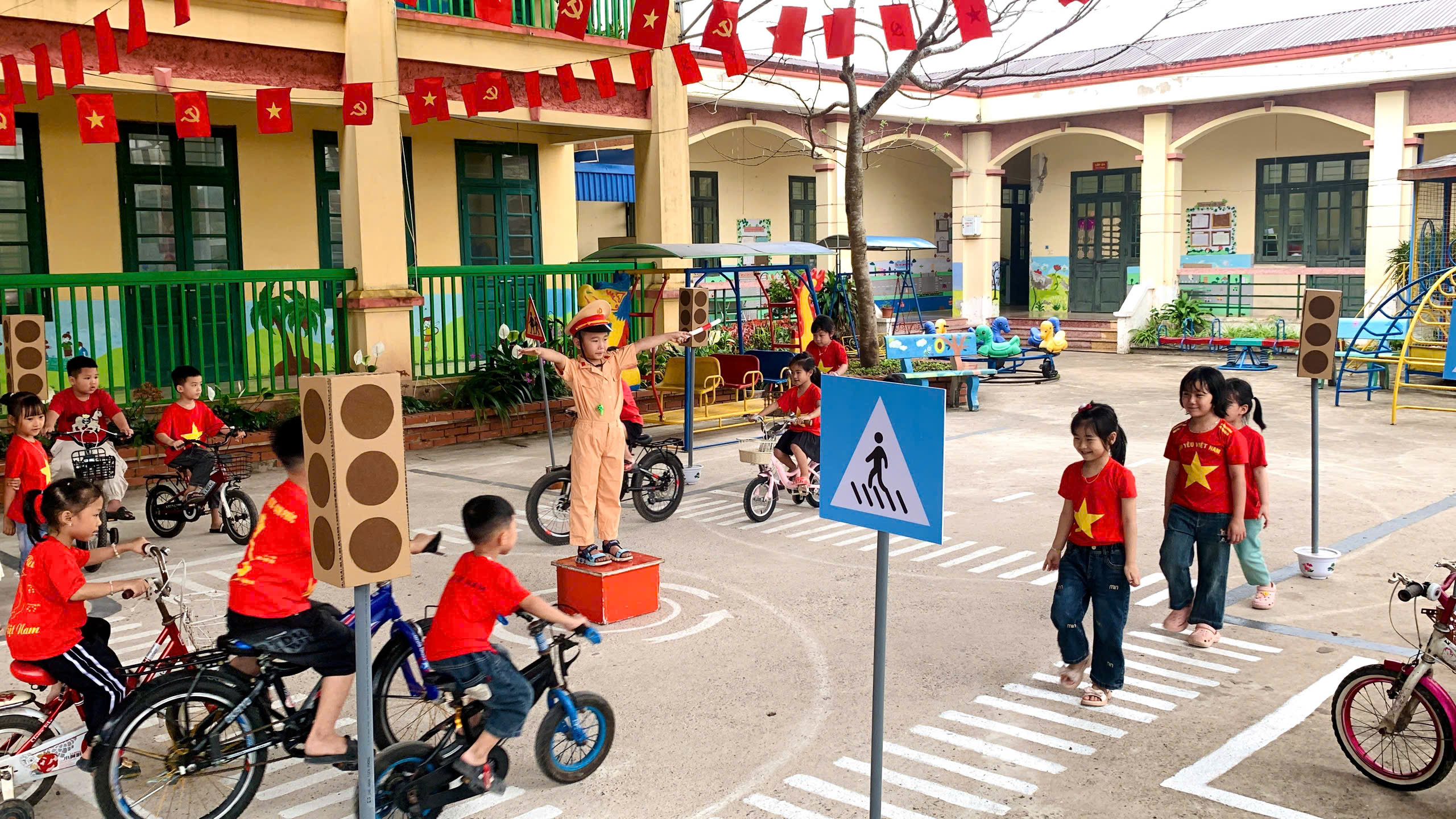 Thông qua sân chơi, trẻ không chỉ ghi nhớ kiến thức mà còn hình thành kỹ năng và thói quen tham gia giao thông an toàn ngay từ nhỏ.